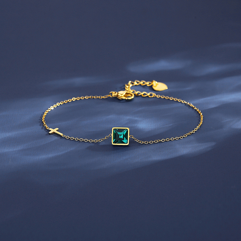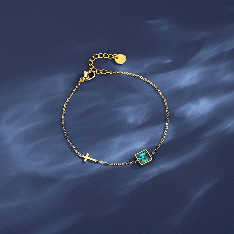 18K Gold Emerald Cross Bracelet – Stainless Steel Jewelry