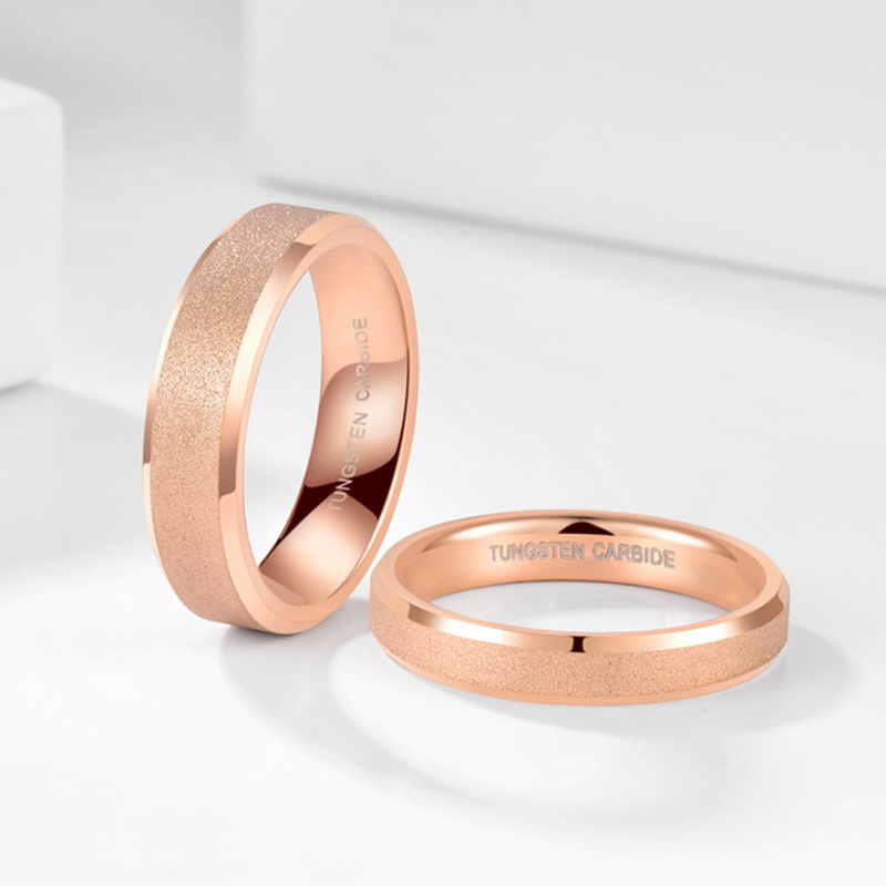 Rose Gold Tungsten Wedding Rings – 4mm & 6mm Pair