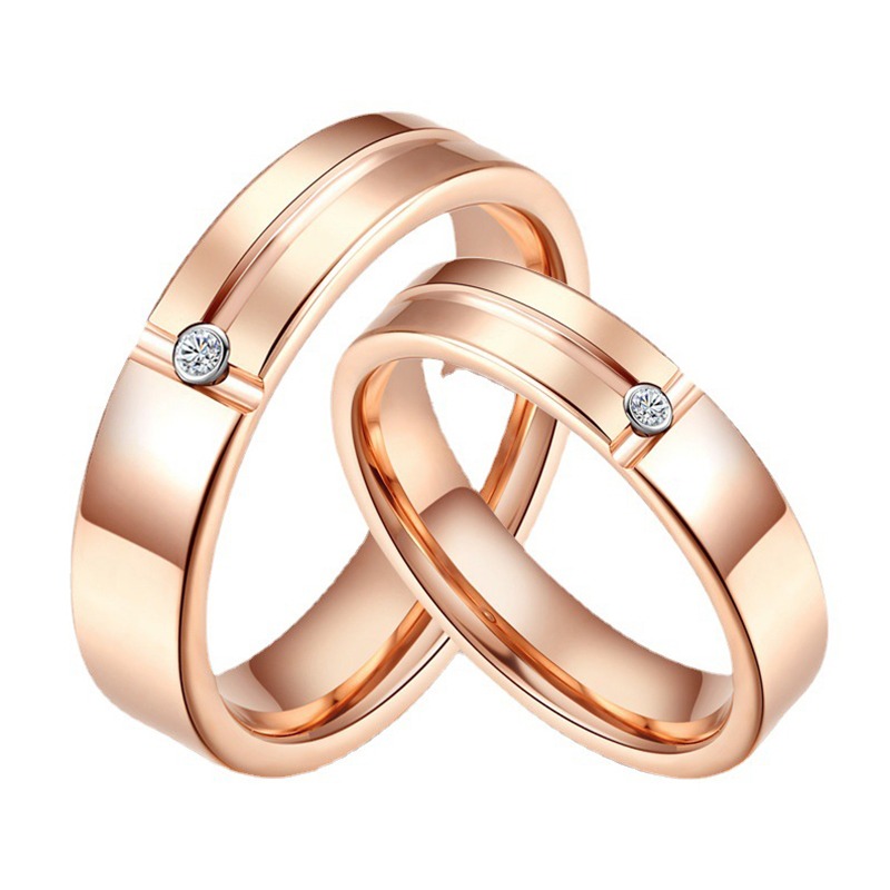 Elegant rose gold plated tungsten wedding rings in 4mm & 6mm widths. Hypoallergenic matching bands for couples with scratch-resistant shine.
