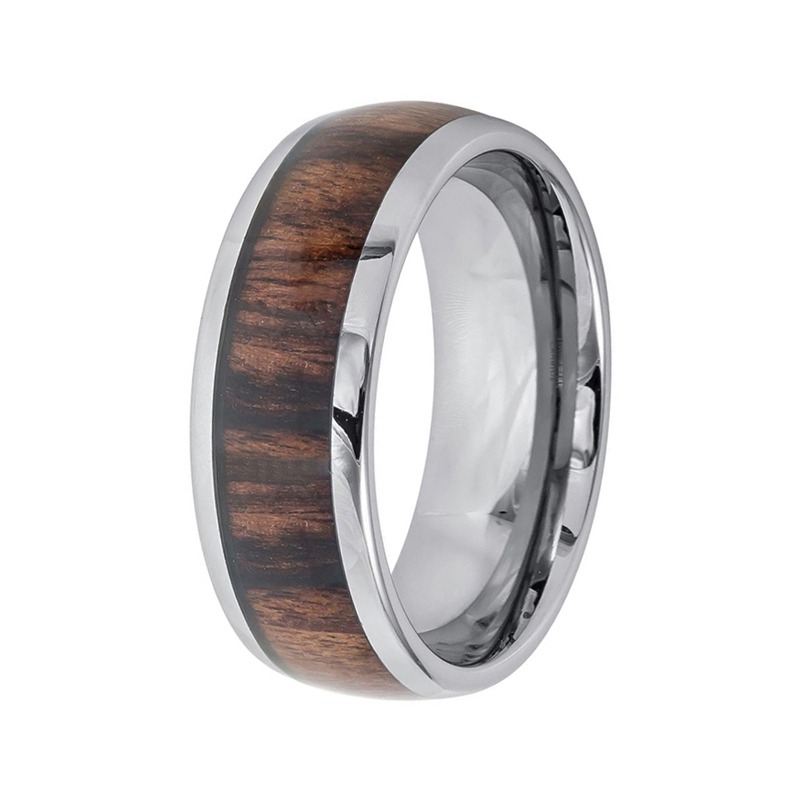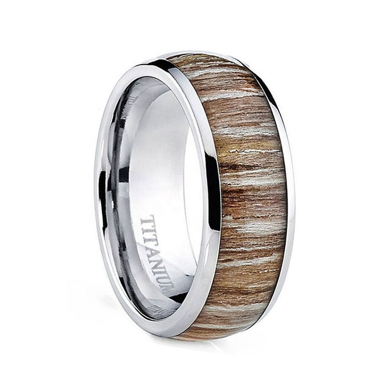 8mm Domed Titanium Wedding Band With Natural Koa Wood Inlay Comfort Fit Gold-plated Men’s Ring