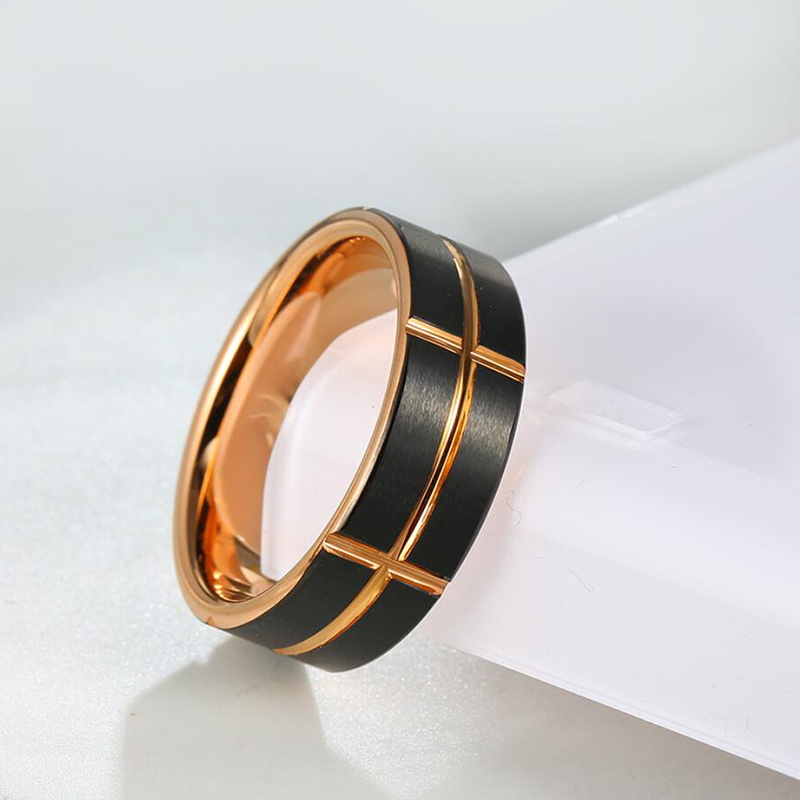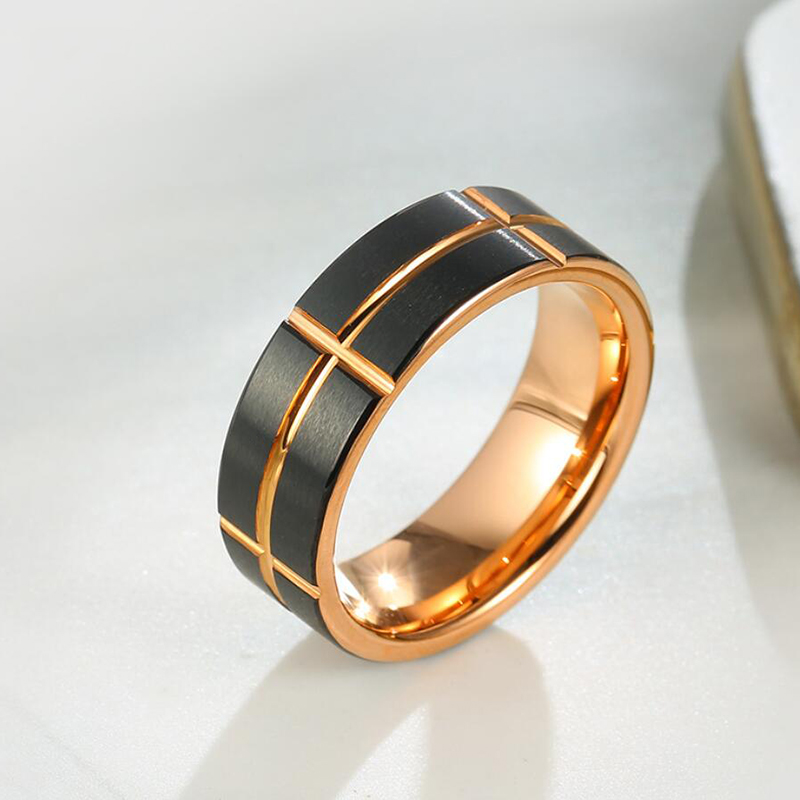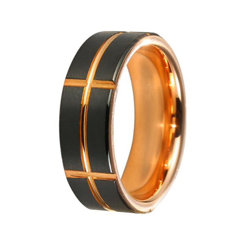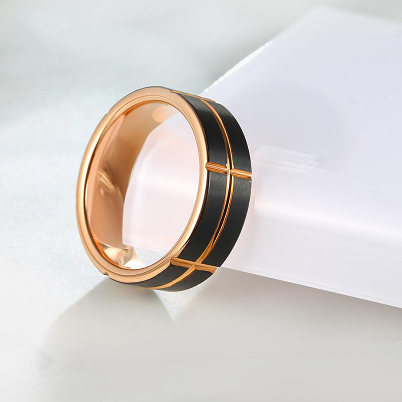 Men’s Black & Rose Gold Tungsten Wedding Band – 8mm