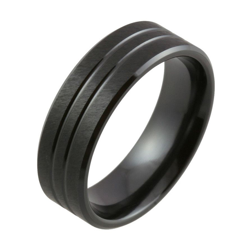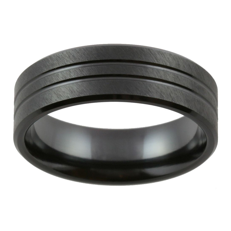 Men’s Black Zirconium Wedding Ring – Double Groove Design