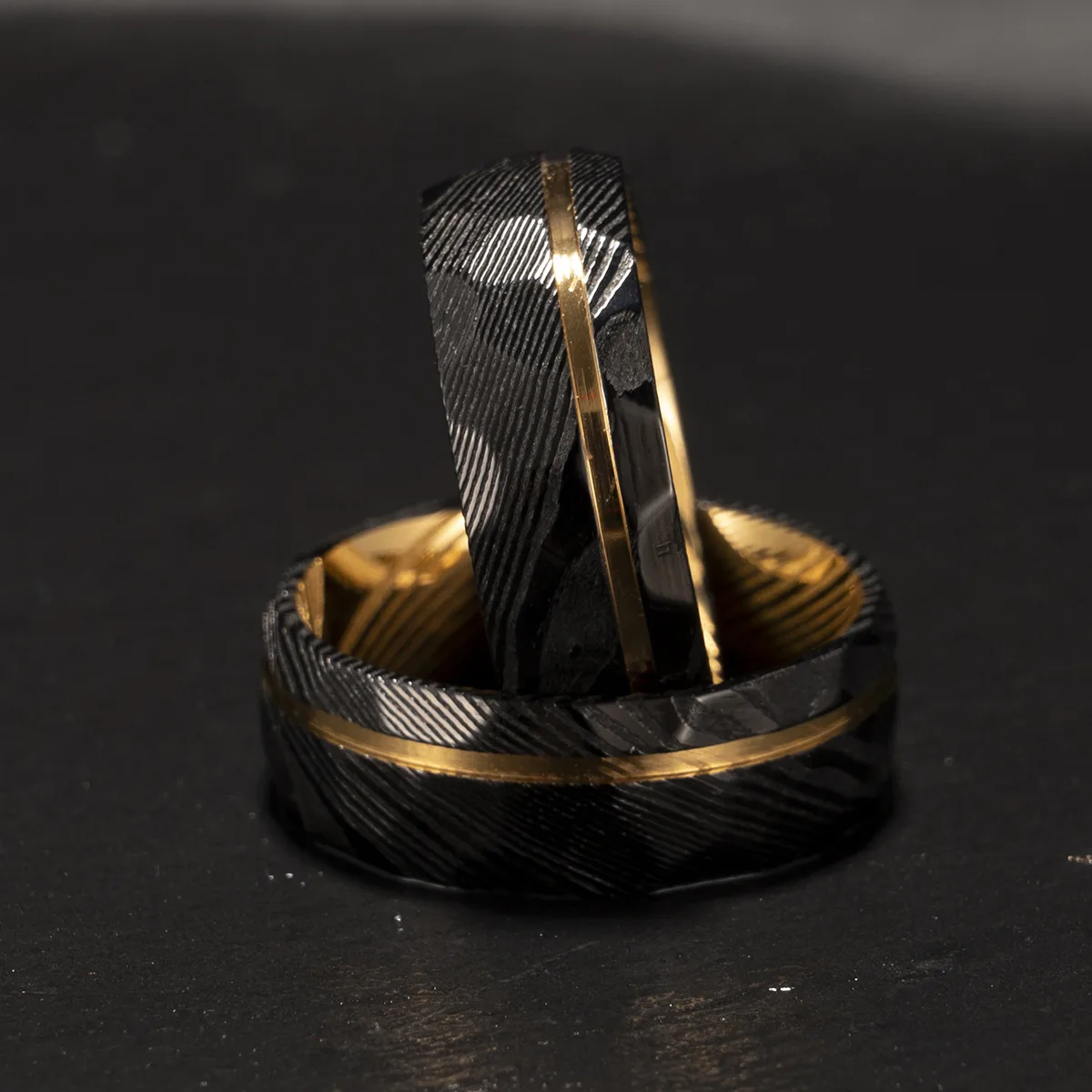 8mm Black and Gold Damascus Steel Ring | Two-Tone Men’s Wedding Band