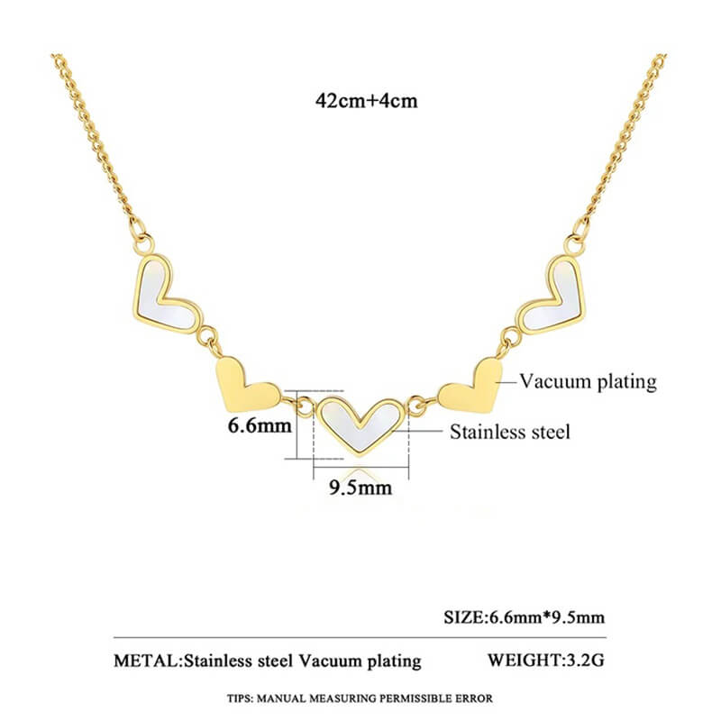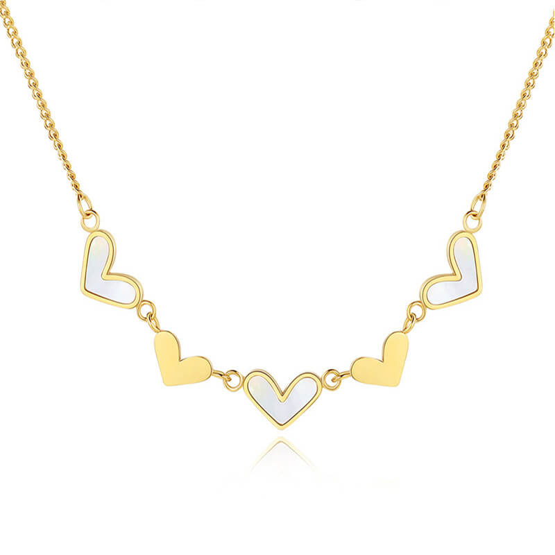 Dainty 18K gold plated choker necklace with white shell heart inlay. Stainless steel jewelry for women, perfect for beach weddings & summer styles.