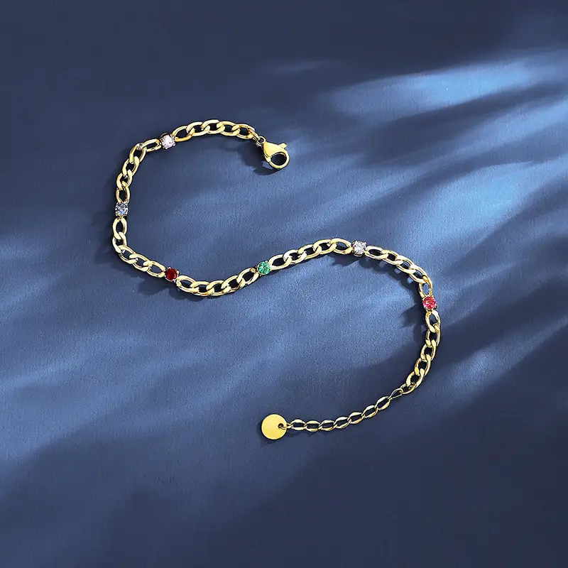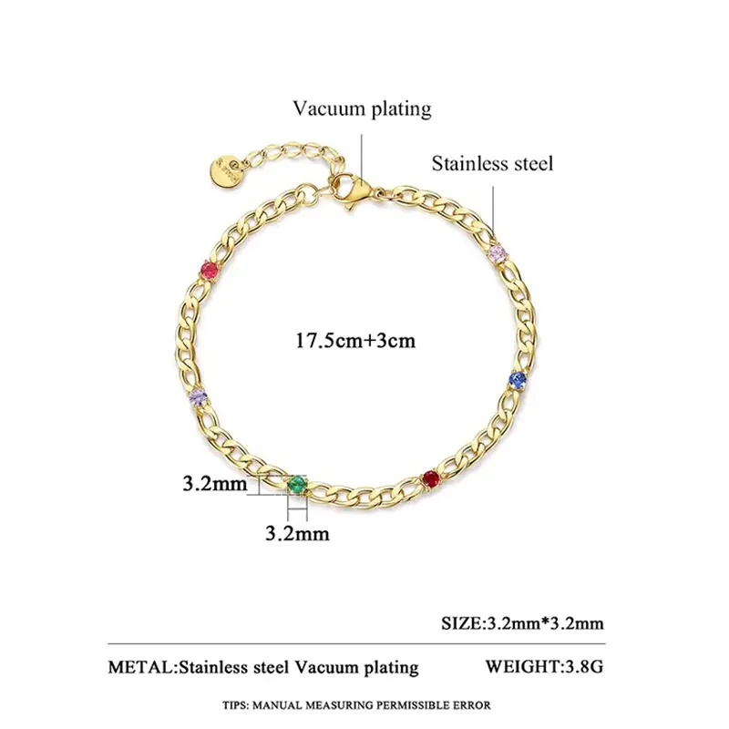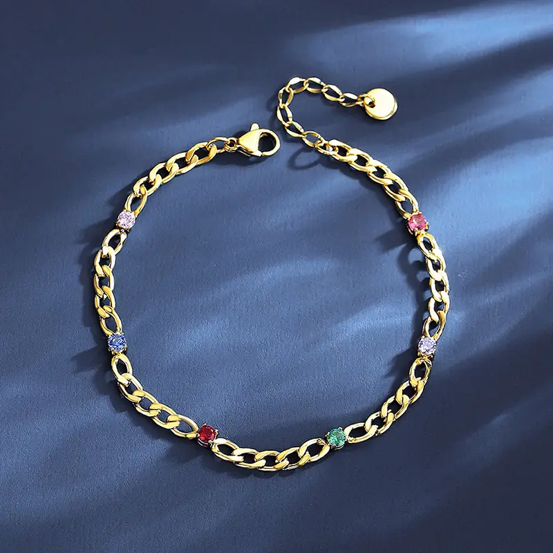 Designer adjustable tennis bracelet with Cuban chain & colorful CZ diamonds. Fashion jewelry perfect for ladies & girls, ideal for gifts or daily elegance.