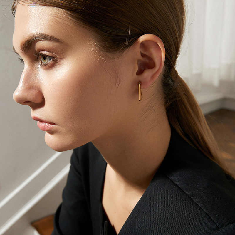 18K Gold Square Stud Earrings – Trendy Geometric Jewelry