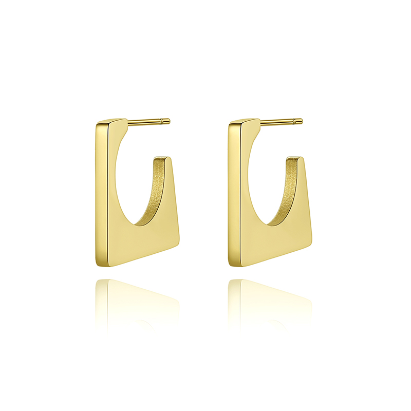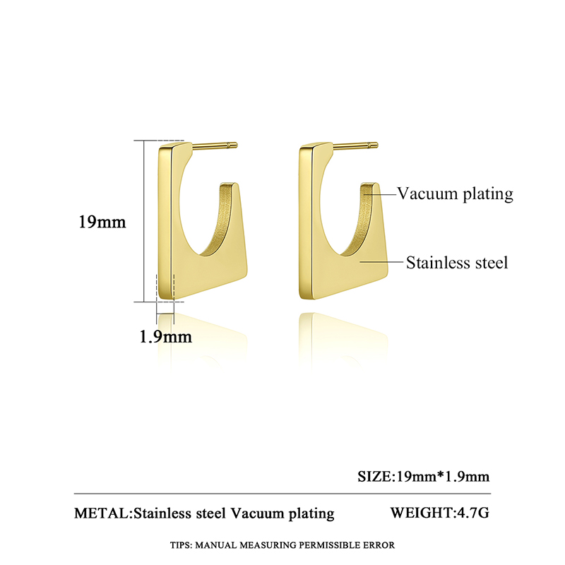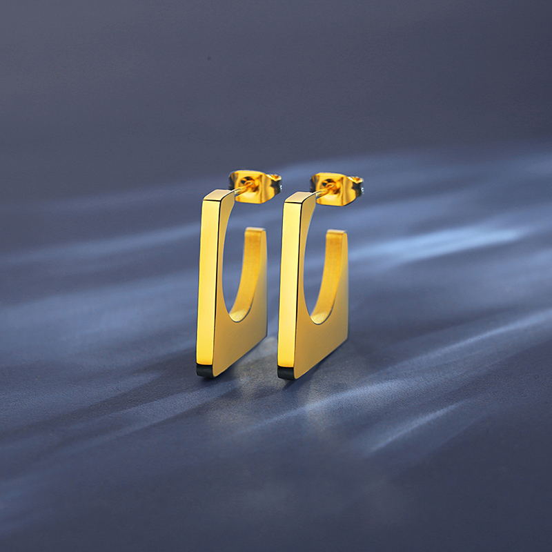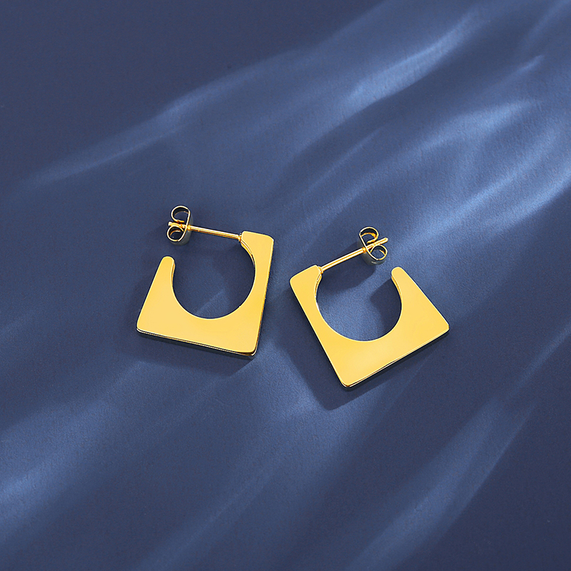 Chic 18K gold plated geometric square stud earrings in stainless steel. Hypoallergenic & lightweight for everyday bold style.