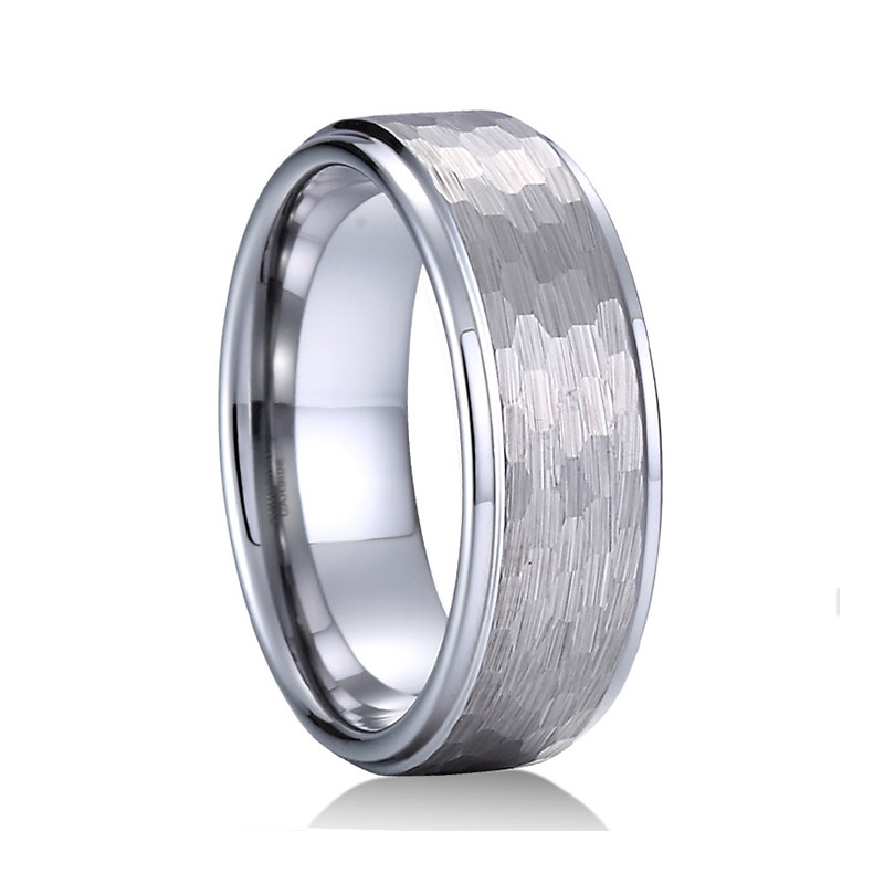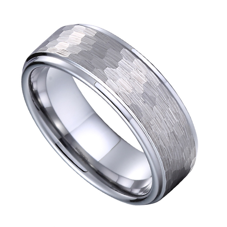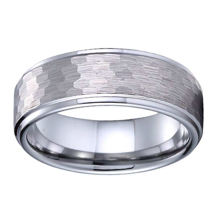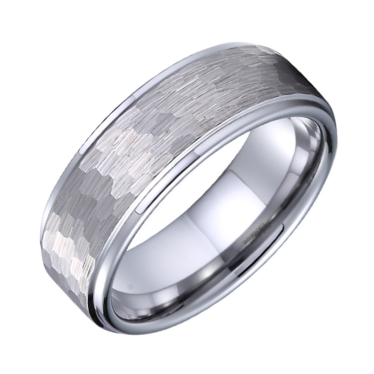 Men’s 8mm Hammered Tungsten Wedding Ring – Fashion Band