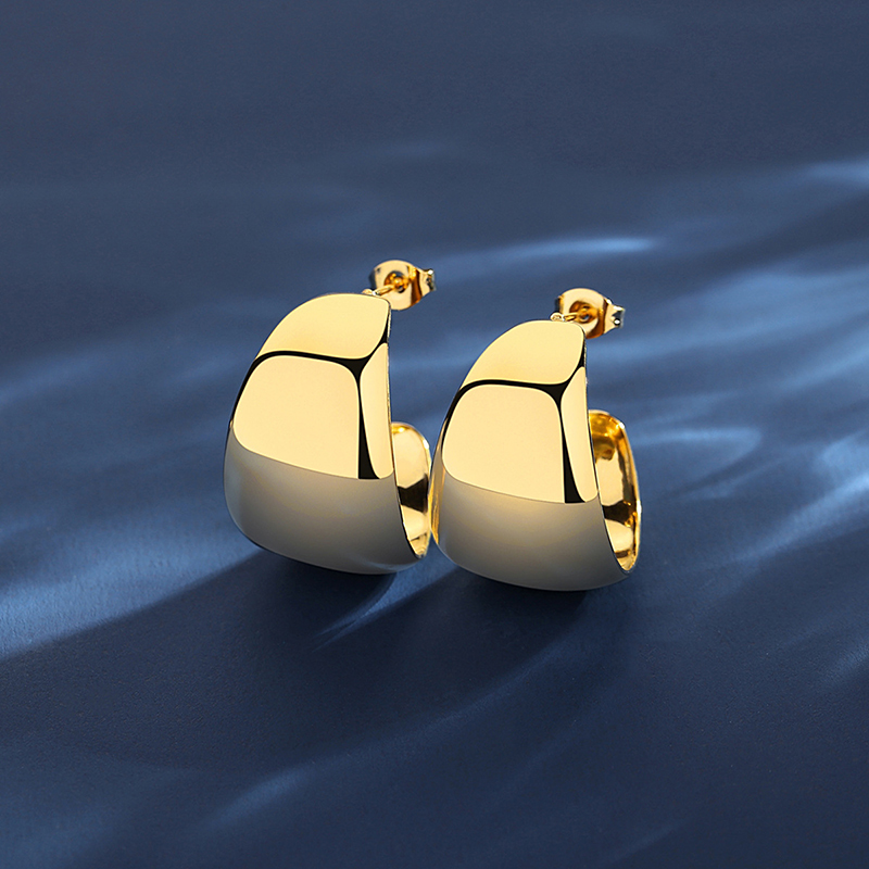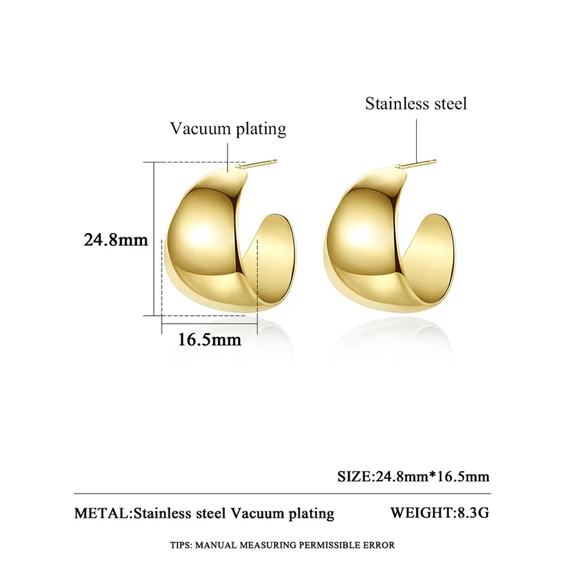 Chunky Hoop Earrings – Gold Plated C-Shaped Women’s Jewelry