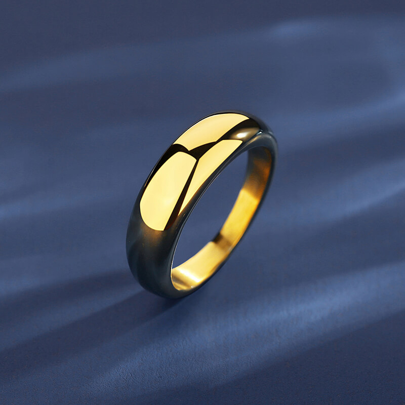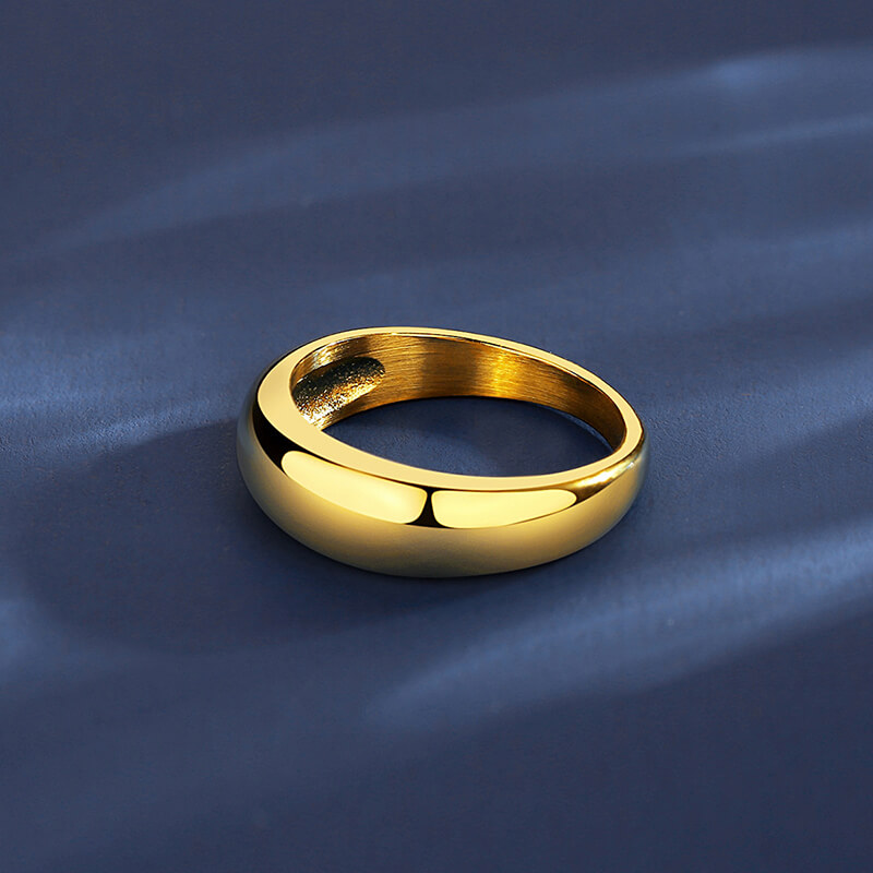 Mirror-polished stainless steel dome ring with 18K PVD gold plating. Bold chunky design for statement-making fashion & everyday elegance.