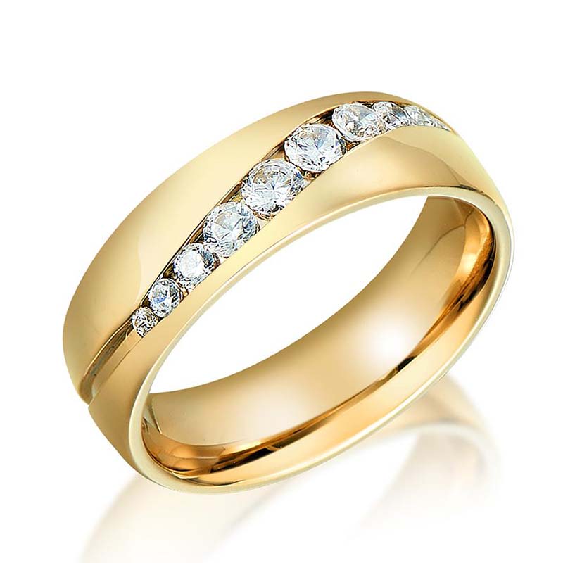 Elegant Stainless Steel Wedding Rings Featuring Cubic Zircon Stones. Hypoallergenic, Durable & Perfect For Couples.