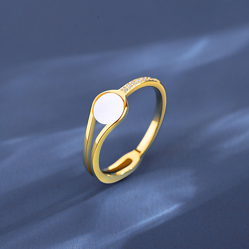 Hypoallergenic seashell zircon rings with 18K gold PVD plating. Fashion stainless steel design for elegant & comfortable daily wear.