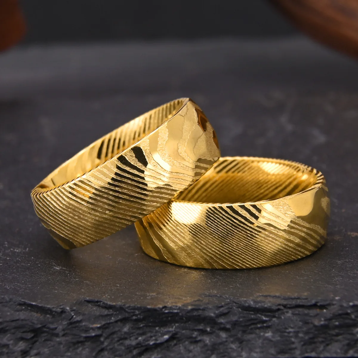 Wholesale 18K Gold Damascus Steel Ring | Custom Men’s Wedding Band Jewelry