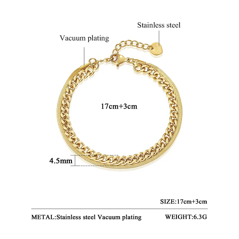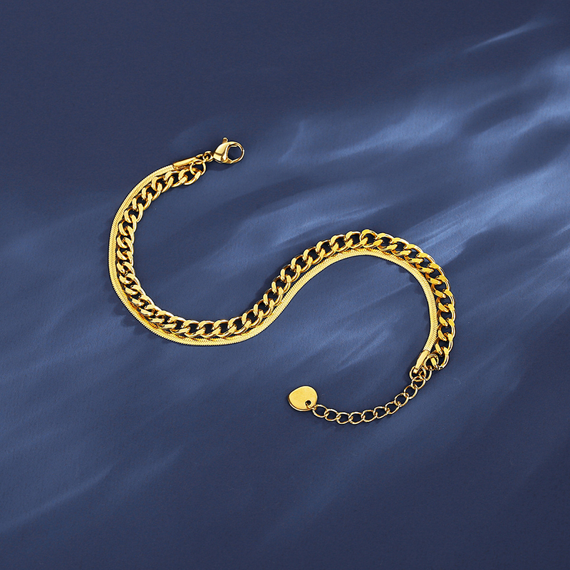 Luxurious 18K gold plated stainless steel bracelet featuring interwoven Cuban and snake chains. Perfect layering piece for women seeking comfortable jewelry