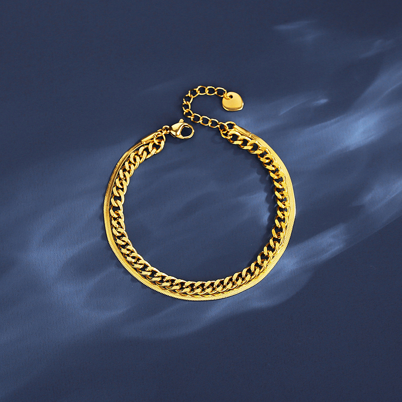 Gold Plated Double Chain Bracelet – Cuban & Snake Link Design