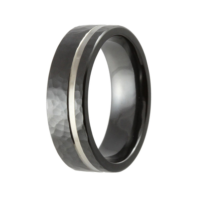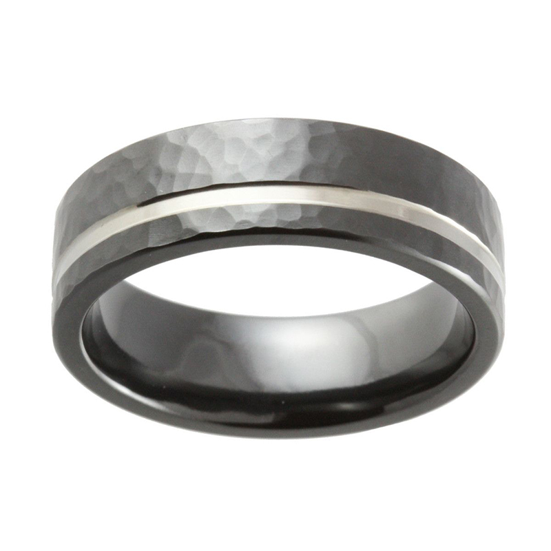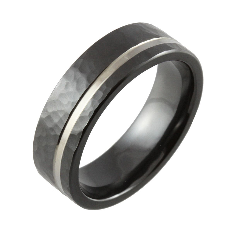 Men’s Hammered Wedding Band – Black & Silver Zirconium Ring