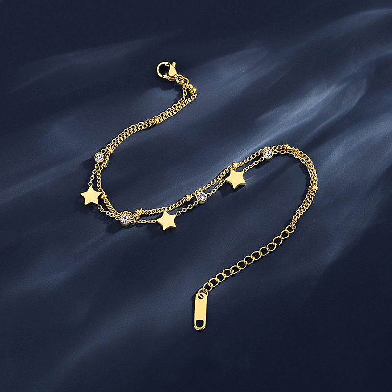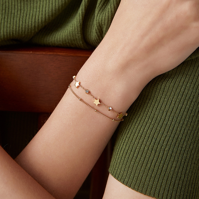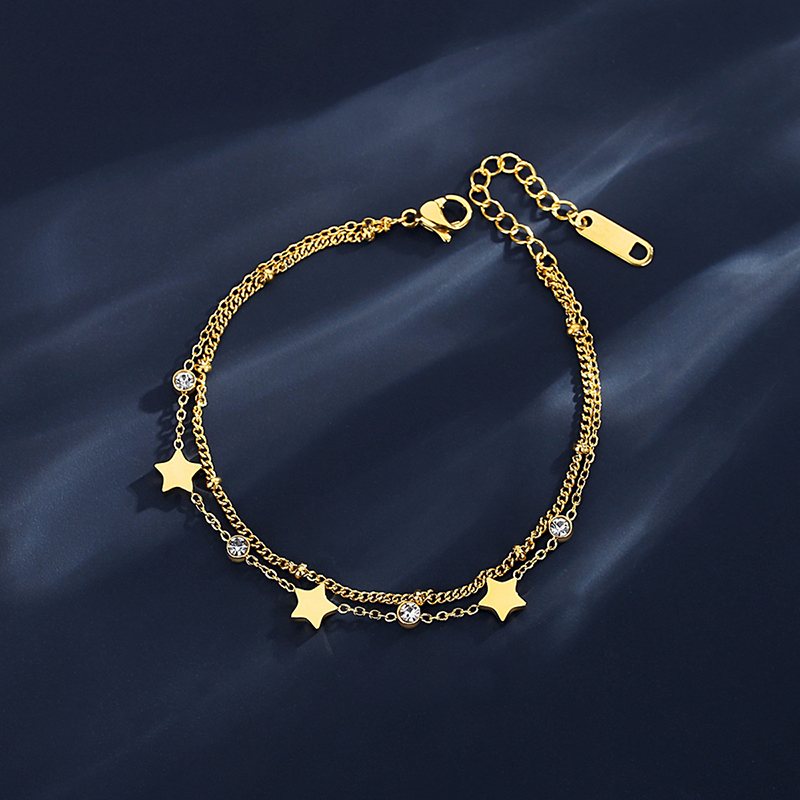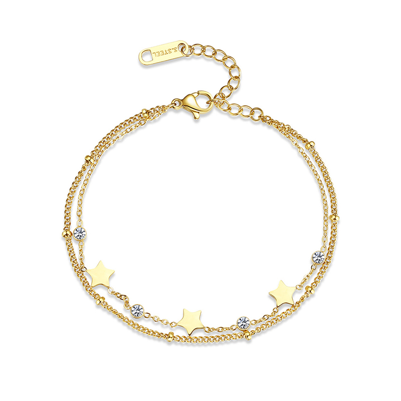 Gold Star Charm Bracelet – Double Layer Chain for Women