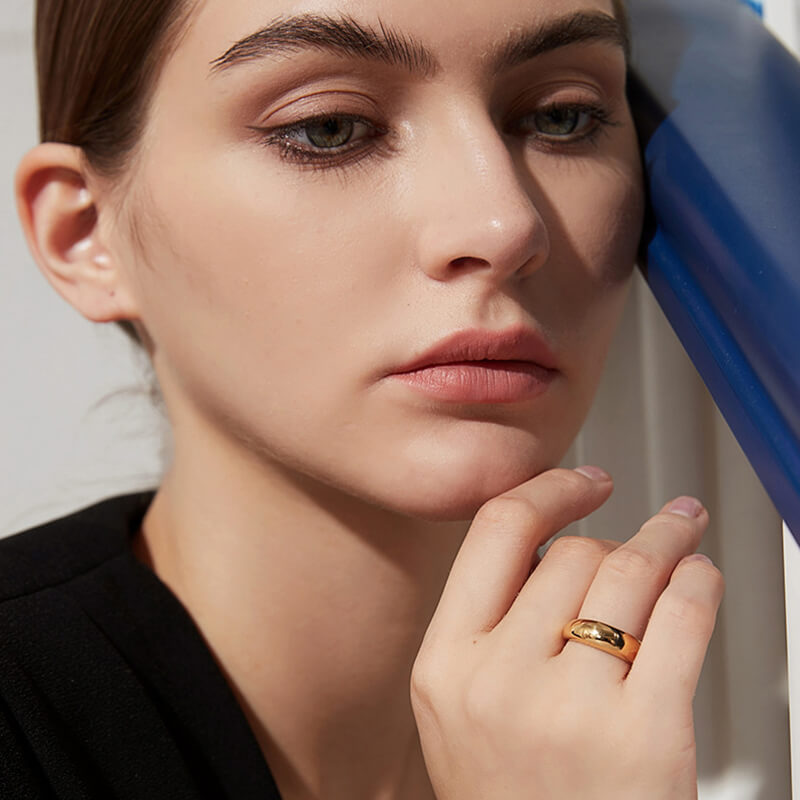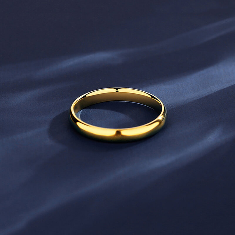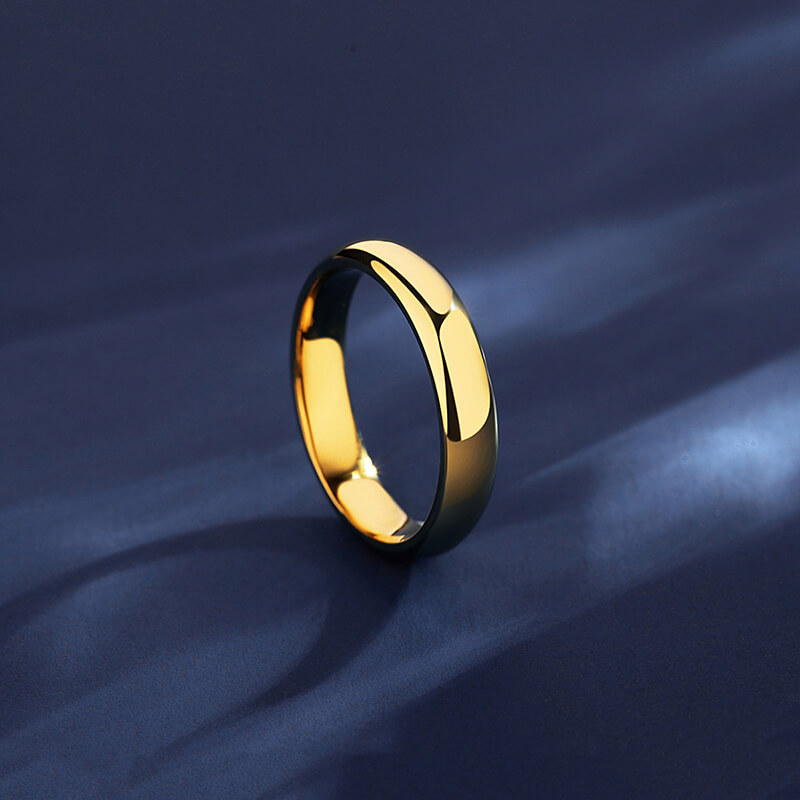 Classic mirror-polished dome wedding band with 18K gold plating. Timeless stainless steel ring for elegant bridal jewelry & anniversary gifts.