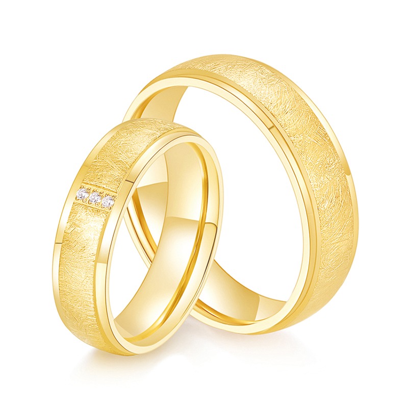 Hypoallergenic titanium steel rings with cubic zirconia stones. Perfect matching promise rings for couples. Free engraving + worldwide shipping!