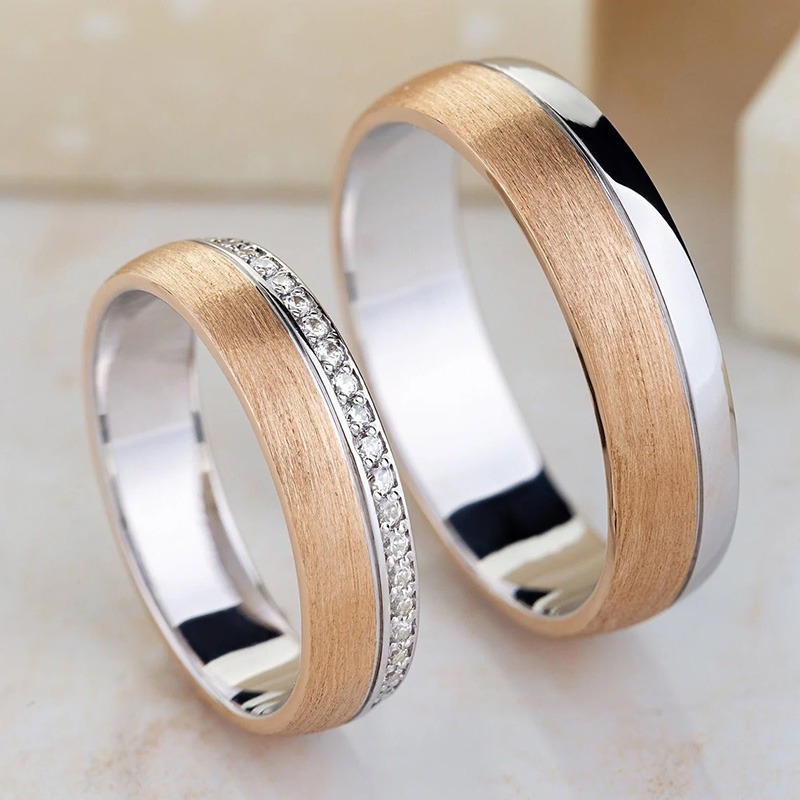 Unique Gold Plated Titanium Steel Wedding Ring With Cubic Zircon For Men Women & Couples.